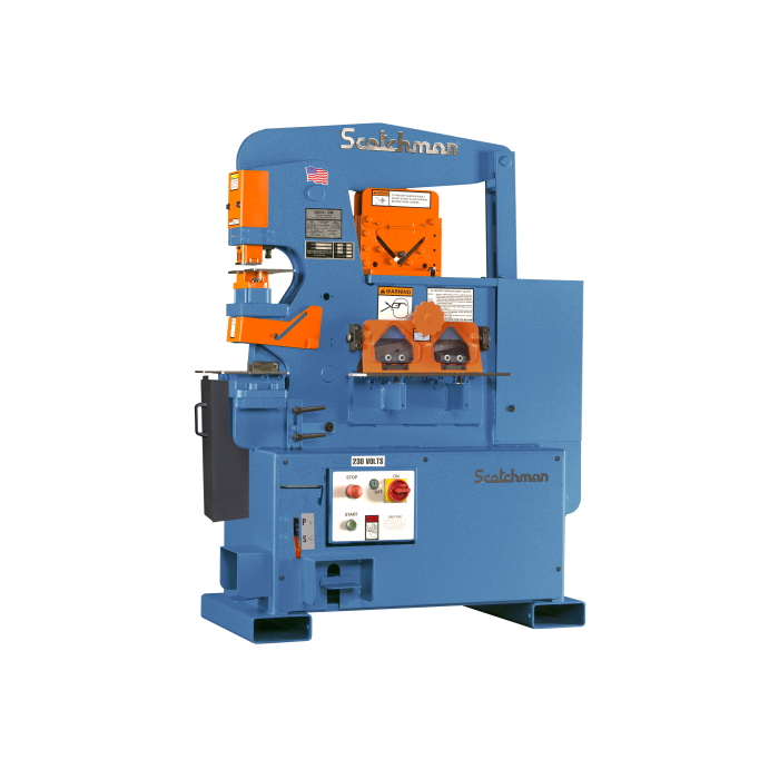 The versatile 50514 CM hydraulic ironworker from Scotchman Industries is now better than ever with the addition of a 5th work station. The 50514 CM is an all-around workhorse and comes standard with a 50-ton punch capable of producing a 13/16” hole in 3/4” material, a 4” x 4”x 3/8” angle shear, a 14” flat bar shear, a built-in rectangle notcher, and a fifth station capable of housing an optional pipe notcher. In addition to the standard tooling features, the 50514 CM is also compatible with a range of optional tools from Scotchman for added versatility and function around the shop. Like all Scotchman ironworkers, 50514 CM is proudly made in the USA and backed by Scotchman’s Best in the Business 3-year warranty.
