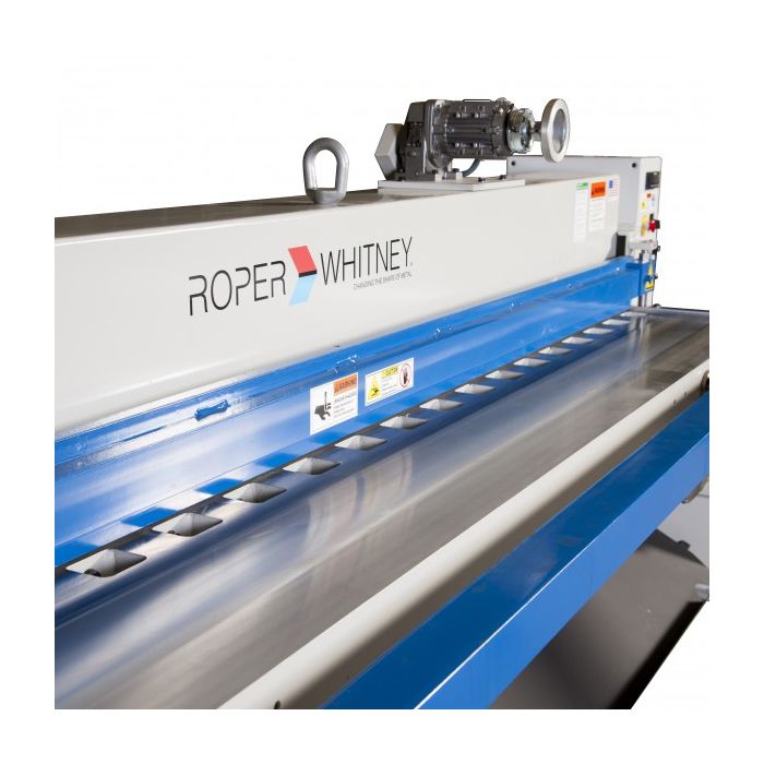 The 10M14 Series shears are standard with an two edge interchangeable top and bottom, high carbon, high chrome top and bottom blades , independent, self-leveling hold down with neoprene insert, single, continuous and jog stroke cycles, motor reverse switch, precision-machined table, with dual inch/metric inlaid bed scales and non-metallic gibs. Non-metallic self-lubricating ram gibs ensure long life for the 10M14. Maintenance free self-lubricating bearings are standard.